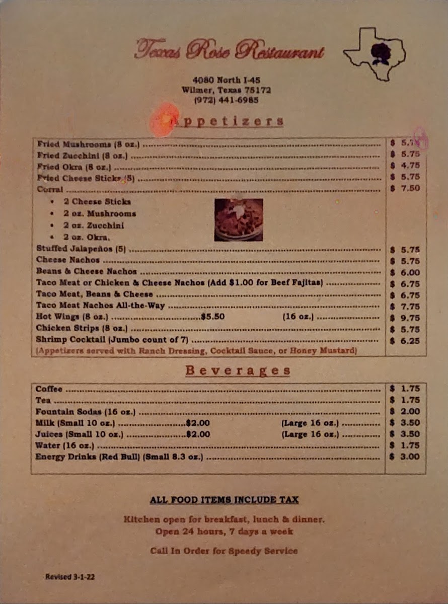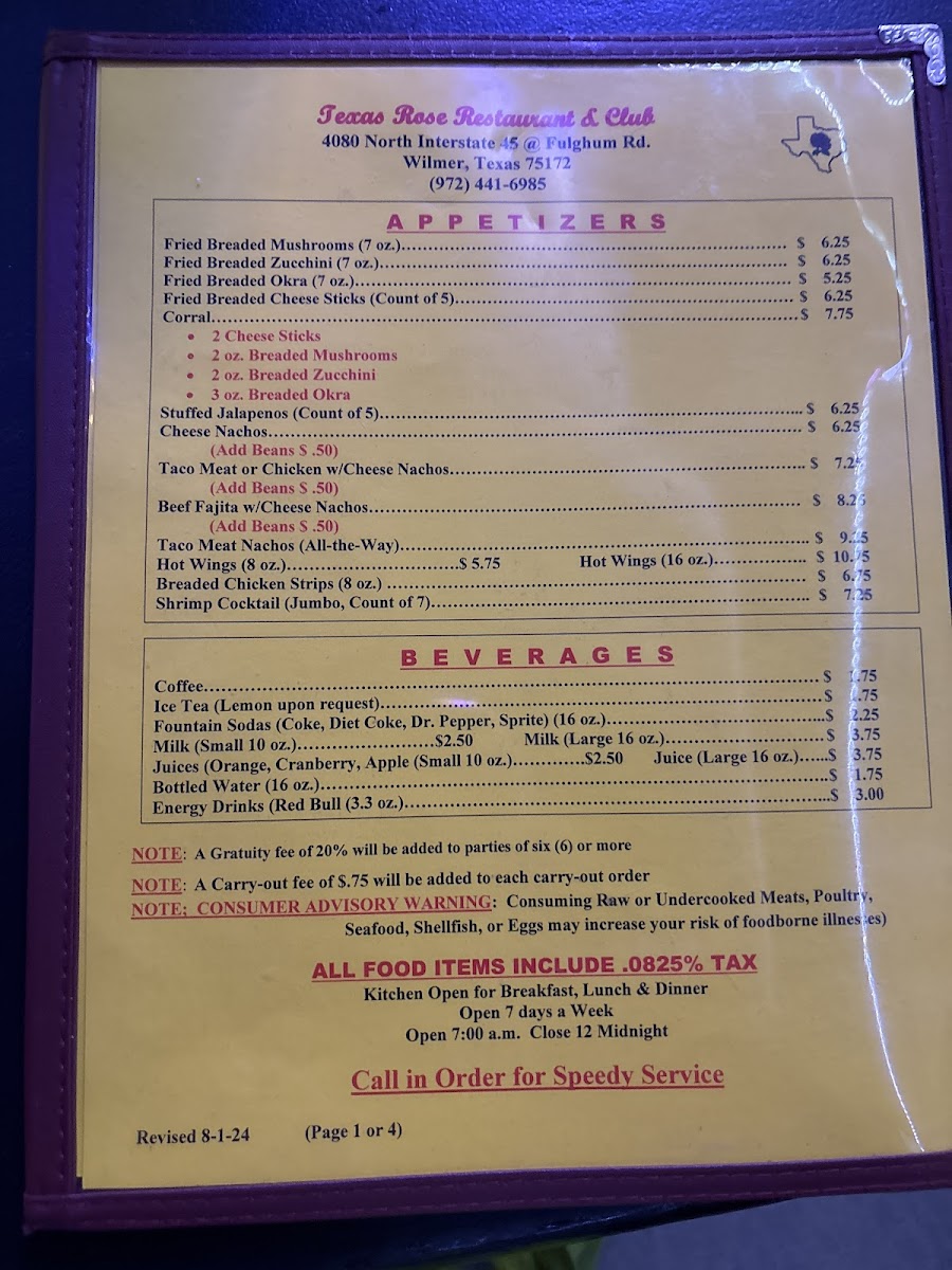 Texas Rose Restaurant & Club Menu